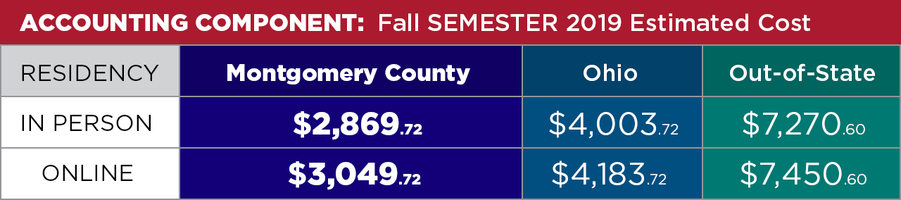 *Total cost is subject to change and does not include textbooks or other course fees. Not all courses may be available online. View the Bursar current fee and tuition schedule here.Students can schedule to take the CPA examination with the Accountancy Board of Ohio after completing all of the educational requirements. You'll want to send all of your official transcripts to the Accountancy Board of Ohio for review with your exam application and pay the application fee.