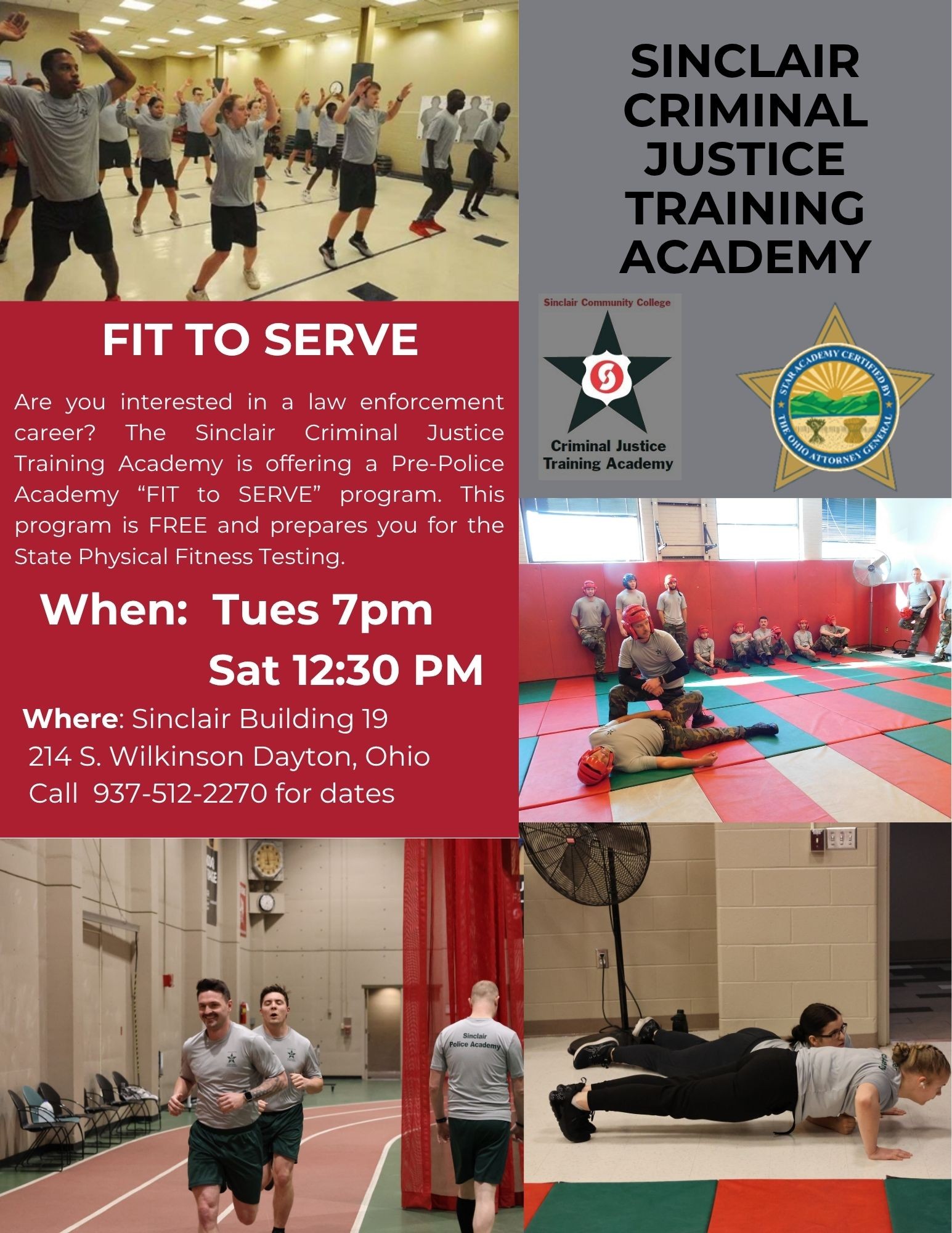 The Training Academy, part of the Department of Criminal Justice at Sinclair Community College, offers both pre-service and in-service training to support the needs of area law enforcement and corrections agencies. Peace Officer Basic and Corrections training offered through the Criminal Justice Training Academy follows the curriculum and standards of the Ohio Peace Officer Training Commission, and all commanders and instructors are certified by OPOTA. We also add content to the Basic curriculum beyond that required by the State.
